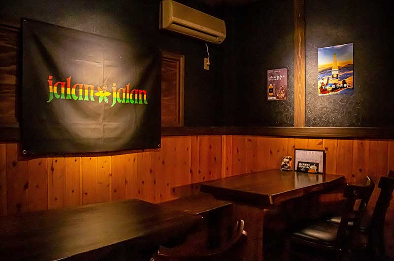 各種料理は、店内で調理をしたこだわりの逸品揃い。鮮度の良い野菜を使うなど、食材や調理法にもこだわり一品一品ていねいにおつくりしております。当店でなチャージはございませんので、店名(「jalan jalan」は、インドネシア語で「散歩」を意味します)のとおり、ふらっとお立ち寄り頂き、美味しいい料理とお酒を気軽にお愉しみ頂ければ幸いです。